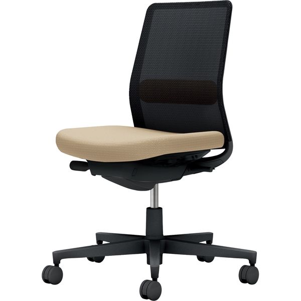【組立設置込】コクヨ モネット 背メッシュ 肘無 ランバー付 背座ツートン ナイロンキャスター ブラック×ソフトベージュ 1脚(直送品)