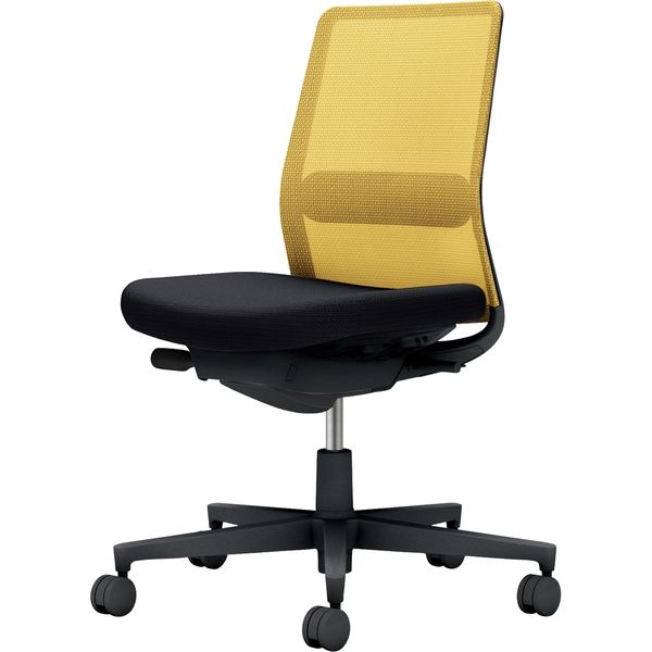 【組立設置込】コクヨ モネット 背メッシュ 肘無 ランバー付 背座ツートン ナイロンキャスター オリーブイエロー×ブラック 1脚(直送品)