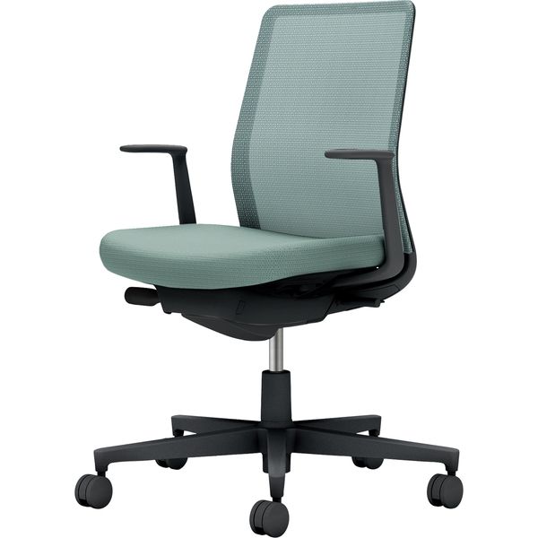 【組立設置込】コクヨ モネット 背メッシュ L型肘 ランバー無 背座同色 ウレタンキャスター ブラック×アッシュターコイズ 1脚(直送品)