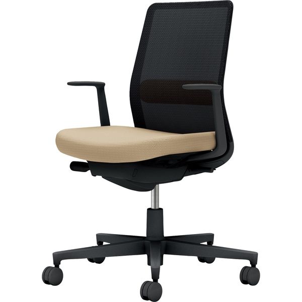 【組立設置込】コクヨ モネット 背メッシュ L型肘 ランバー付 背座ツートン ウレタンキャスター ブラック×ソフトベージュ 1脚(直送品)