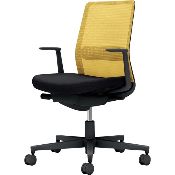 【組立設置込】コクヨ モネット 背メッシュ L型肘 ランバー付 背座ツートン ウレタンキャスター オリーブイエロー×ブラック 1脚(直送品)