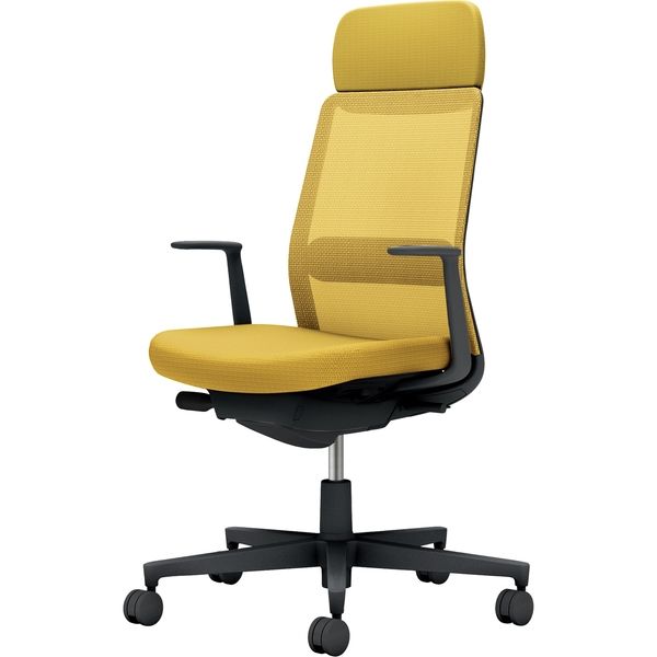 【組立設置込】コクヨ モネット 背メッシュ ショルダーサポート L型肘 ランバー付 背座同色 ウレタンキャスター BK×Oイエロー 1脚(直送品)