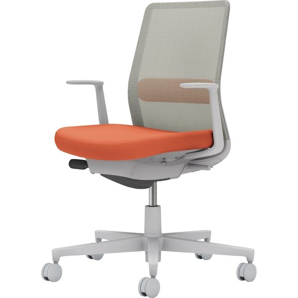 その他商品仕様 ●機能:ガス圧昇降式、オートフィット シンクロロッキング、ロッキング反力 簡易調節機能(5段階)、ロッキング角度 範囲調節機能(4段階・角度: 0、6、13、20°)、座の奥行き調節(ストローク:50mm)、座の高さ調節(ストローク:90mm)、ポスチャーサポートシート、ランバーサポート(上下ストローク50mm)●キャスター種類:木質のフローリングのような硬い床でも床に傷をつけにくいポリウレタン巻きキャスター●カラー: 本体:ライトグレー 座:ソフトテラコッタ背:ライトグレーランバーサポート:ソフトテラコッタ