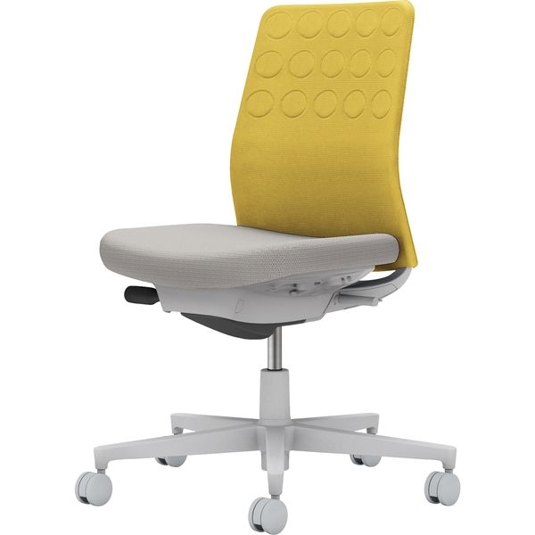 本商品:【組立設置込】コクヨ モネット クッション 肘無 ランバー無 背座ツートン ウレタンキャスター ライトグレー×オリーブイエロー 1脚(直送品)