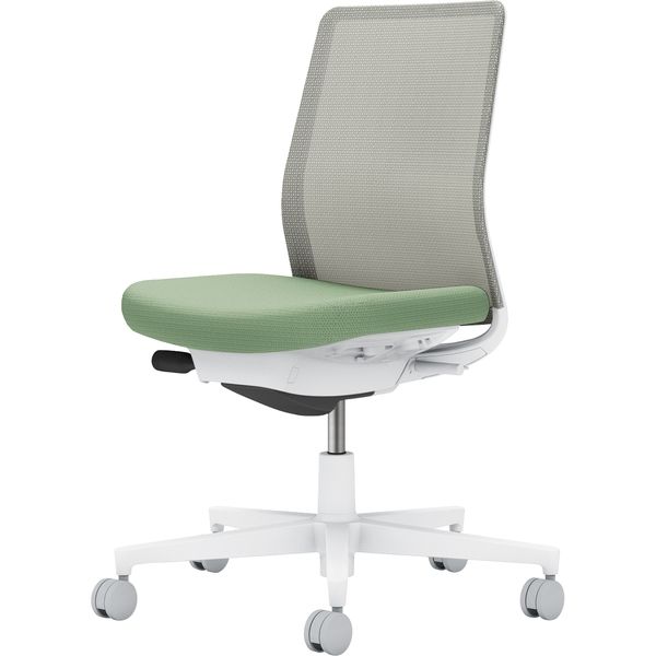 | その他商品仕様 | ●機能:ガス圧昇降式、オートフィット シンクロロッキング、ロッキング反力 簡易調節機能(5段階)、ロッキング角度 範囲調節機能(4段階・角度: 0、6、13、20°)、座の奥行き調節(ストローク:50mm)、座の高さ調節(ストローク:90mm)、ポスチャーサポートシート●キャスター種類:カーペットのような柔らかい床に適したナイロンキャスターです。●脚仕様:クリーンテクトコーティング(ホワイト脚のみ)。白色の脚羽根が抱える課題を解決すべく、「防汚性」に優れたコーティングを表面に施しました。●カラー: 本体:ホワイトグレー 座:パウダーミント背:ライトグレー | ||