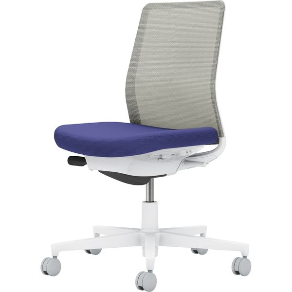 | その他商品仕様 | ●機能:ガス圧昇降式、オートフィット シンクロロッキング、ロッキング反力 簡易調節機能(5段階)、ロッキング角度 範囲調節機能(4段階・角度: 0、6、13、20°)、座の奥行き調節(ストローク:50mm)、座の高さ調節(ストローク:90mm)、ポスチャーサポートシート●キャスター種類:カーペットのような柔らかい床に適したナイロンキャスターです。●脚仕様:クリーンテクトコーティング(ホワイト脚のみ)。白色の脚羽根が抱える課題を解決すべく、「防汚性」に優れたコーティングを表面に施しました。●カラー: 本体:ホワイトグレー 座:ディープパープル背:ライトグレー | ||