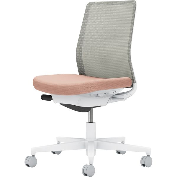 | その他商品仕様 | ●機能:ガス圧昇降式、オートフィット シンクロロッキング、ロッキング反力 簡易調節機能(5段階)、ロッキング角度 範囲調節機能(4段階・角度: 0、6、13、20°)、座の奥行き調節(ストローク:50mm)、座の高さ調節(ストローク:90mm)、ポスチャーサポートシート●キャスター種類:カーペットのような柔らかい床に適したナイロンキャスターです。●脚仕様:クリーンテクトコーティング(ホワイト脚のみ)。白色の脚羽根が抱える課題を解決すべく、「防汚性」に優れたコーティングを表面に施しました。●カラー: 本体:ホワイトグレー 座:アッシュピンク背:ライトグレー | ||