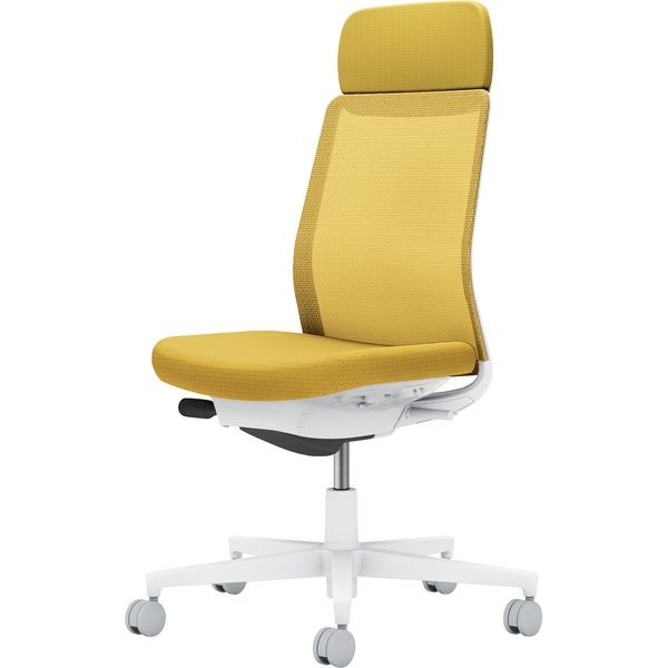 | その他商品仕様 | ●機能:ガス圧昇降式、オートフィット シンクロロッキング、ロッキング反力 簡易調節機能(5段階)、ロッキング角度 範囲調節機能(4段階・角度: 0、6、13、20°)、座の奥行き調節(ストローク:50mm)、座の高さ調節(ストローク:90mm)、ポスチャーサポートシート、ショルダーサポート●キャスター種類:カーペットのような柔らかい床に適したナイロンキャスターです。●脚仕様:クリーンテクトコーティング(ホワイト脚のみ)。白色の脚羽根が抱える課題を解決すべく、「防汚性」に優れたコーティングを表面に施しました。●カラー: 本体:ホワイトグレー 座:オリーブイエロー背:オリーブイエロー | ||