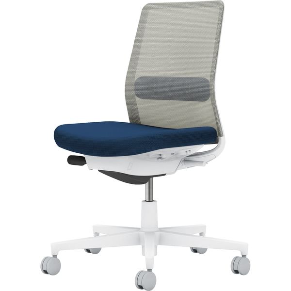 その他商品仕様 ●機能:ガス圧昇降式、オートフィット シンクロロッキング、ロッキング反力 簡易調節機能(5段階)、ロッキング角度 範囲調節機能(4段階・角度: 0、6、13、20°)、座の奥行き調節(ストローク:50mm)、座の高さ調節(ストローク:90mm)、ポスチャーサポートシート、ランバーサポート(上下ストローク50mm)●キャスター種類:カーペットのような柔らかい床用●脚仕様:クリーンテクトコーティング(ホワイト脚のみ)。白色の脚羽根が抱える課題を解決すべく、「防汚性」に優れたコーティングを表面に施しました。●カラー: 本体:ホワイトグレー 座:ネイビー背:ライトグレーランバーサポート:ネイビー