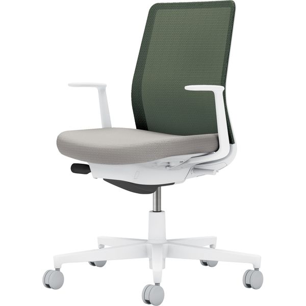 【組立設置込】コクヨ モネット 背メッシュ L型肘 ランバー無 背座ツートン ウレタンキャスター Wグレー×Lグレー×ディープグリーン 1脚(直送品)