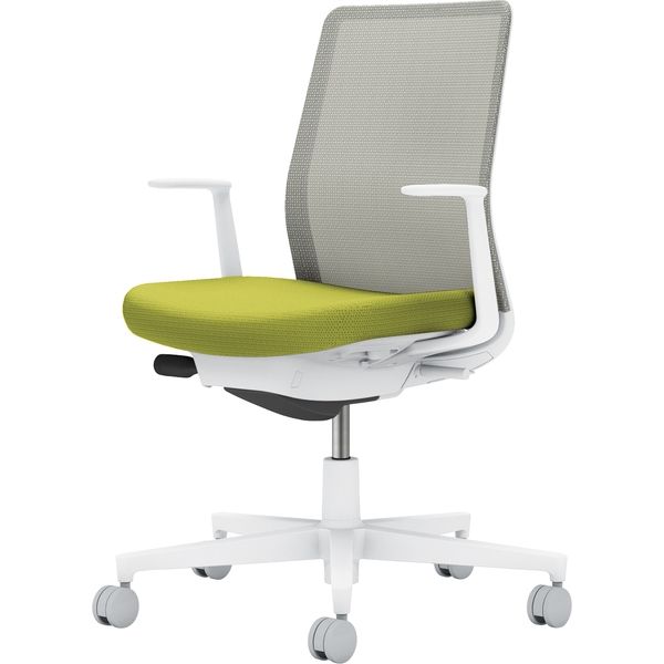 | その他商品仕様 | ●機能:ガス圧昇降式、オートフィット シンクロロッキング、ロッキング反力 簡易調節機能(5段階)、ロッキング角度 範囲調節機能(4段階・角度: 0、6、13、20°)、座の奥行き調節(ストローク:50mm)、座の高さ調節(ストローク:90mm)、ポスチャーサポートシート●キャスター種類:カーペットのような柔らかい床に適したナイロンキャスターです。●脚仕様:クリーンテクトコーティング(ホワイト脚のみ)。白色の脚羽根が抱える課題を解決すべく、「防汚性」に優れたコーティングを表面に施しました。●カラー: 本体:ホワイトグレー 座:ライトオリーブ背:ライトグレー | ||