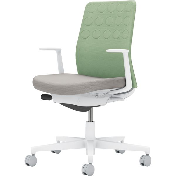 | その他商品仕様 | ●機能:ガス圧昇降式、オートフィット シンクロロッキング、ロッキング反力 簡易調節機能(5段階)、ロッキング角度 範囲調節機能(4段階・角度: 0、6、13、20°)、座の奥行き調節(ストローク:50mm)、座の高さ調節(ストローク:90mm)、ポスチャーサポートシート●キャスター種類:木質のフローリングのような硬い床でも床に傷をつけにくいポリウレタン巻きキャスター●脚仕様:クリーンテクトコーティング(ホワイト脚のみ)。白色の脚羽根が抱える課題を解決すべく、「防汚性」に優れたコーティングを表面に施しました。●カラー: 本体:ホワイトグレー 座:ライトグレー背:パウダーミント | ||