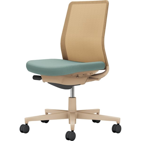 【組立設置込】コクヨ モネット 背メッシュ 肘無 ランバー無 背座ツートン ナイロンキャスター ソフトベージュ×アッシュターコイズ 1脚(直送品)