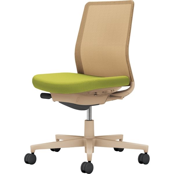 【組立設置込】コクヨ モネット 背メッシュ 肘無 ランバー無 背座ツートン ナイロンキャスター ソフトベージュ×ライトオリーブ 1脚(直送品)