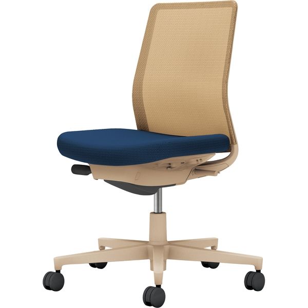 【組立設置込】コクヨ モネット 背メッシュ 肘無 ランバー無 背座ツートン ナイロンキャスター ソフトベージュ×ネイビー 1脚(直送品)
