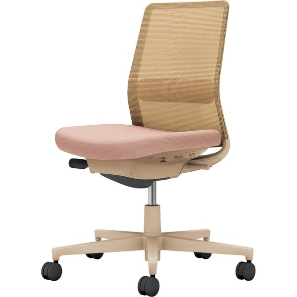 【組立設置込】コクヨ モネット 背メッシュ 肘無 ランバー付 背座ツートン ウレタンキャスター ソフトベージュ×アッシュピンク 1脚(直送品)