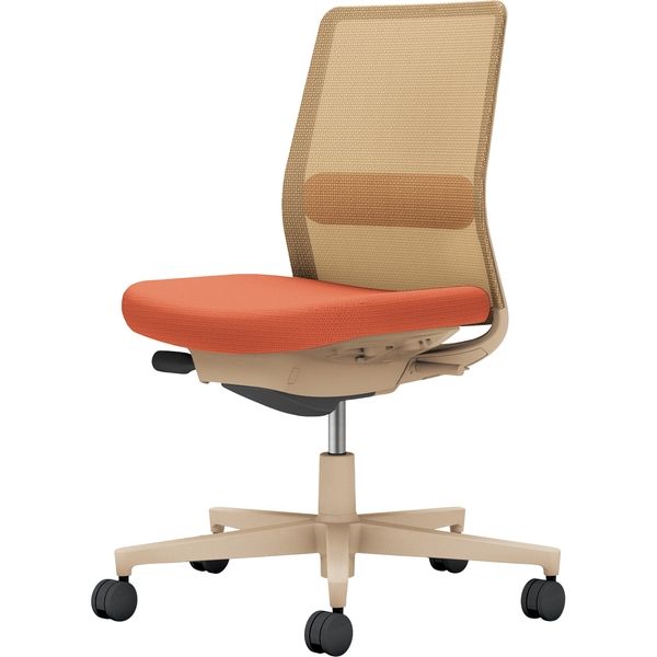 【組立設置込】コクヨ モネット 背メッシュ 肘無 ランバー付 背座ツートン ナイロンキャスター ソフトベージュ×ソフトテラコッタ 1脚(直送品)
