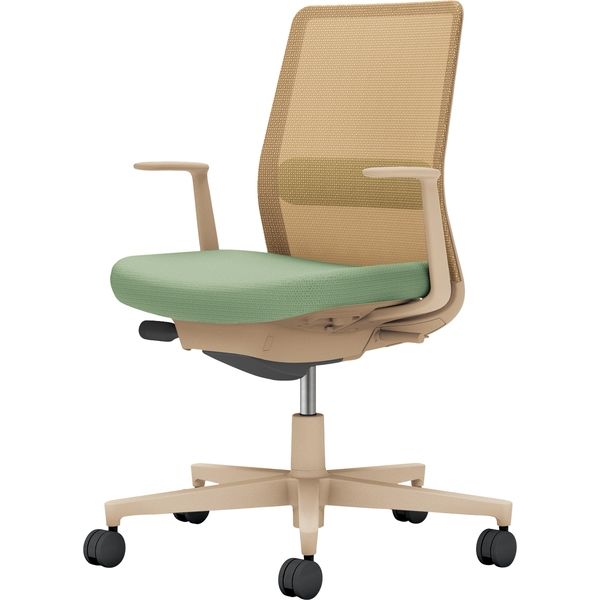 | その他商品仕様 | ●機能:ガス圧昇降式、オートフィット シンクロロッキング、ロッキング反力 簡易調節機能(5段階)、ロッキング角度 範囲調節機能(4段階・角度: 0、6、13、20°)、座の奥行き調節(ストローク:50mm)、座の高さ調節(ストローク:90mm)、ポスチャーサポートシート、ランバーサポート(上下ストローク50mm)●キャスター種類:カーペットのような柔らかい床用●カラー: 本体:ソフトベージュ 座:パウダーミント背:ソフトベージュランバーサポート:パウダーミント | ||