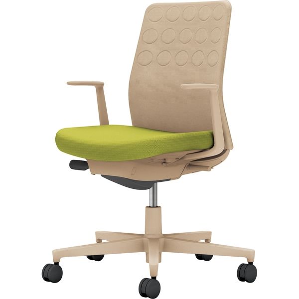 材質 ●材質/背:(背板)強化ナイロン(張り地)ポリエステル(クッション)スラブウレタン●材質/座:(座板)PP(張り地)ポリエステル(クッション)モールドウレタン●材質/肘:強化ナイロン●材質/脚:強化ナイロン、キャスター:ポリウレタン巻き(φ60mm) カラー ソフトベージュ×ライトオリーブ