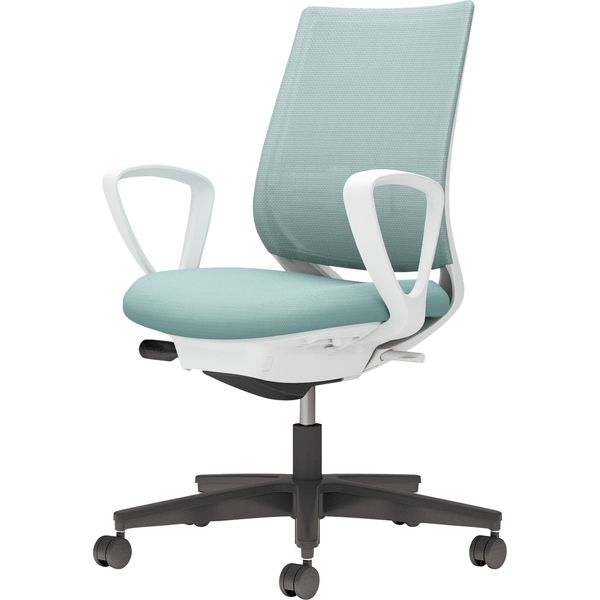 【組立設置込】コクヨ ミトラ2 メッシュ スタンダードバック ランバー付 サークル肘 黒脚 ナイロンキャスター 白灰×Aターコイズ 1脚(直送品)