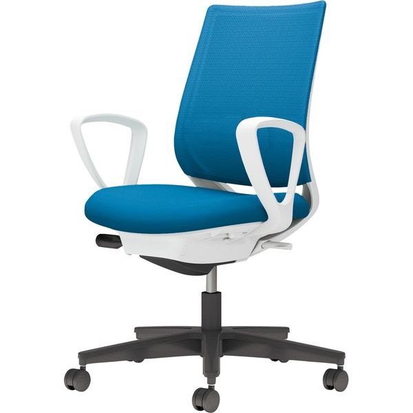 【組立設置込】コクヨ ミトラ2 メッシュ スタンダードバック ランバー付 サークル肘 黒脚 ナイロンキャスター 白灰×ターコイズ 1脚(直送品)