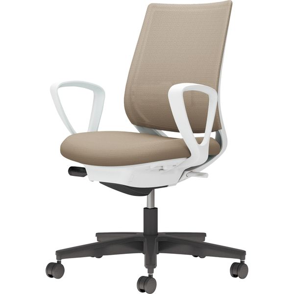 【組立設置込】コクヨ ミトラ2 メッシュ スタンダードバック ランバー付 サークル肘 黒脚 ナイロンキャスター 白灰×ソフトベージュ 1脚(直送品)