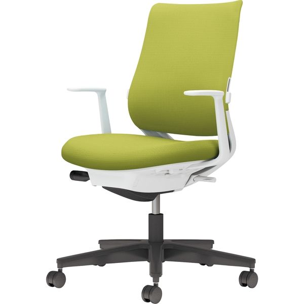 【組立設置込】コクヨ ミトラ2 布 スタンダードバック ランバー付 L字肘 黒脚 ナイロンキャスター ホワイトグレー×ライトオリーブ 1脚(直送品)