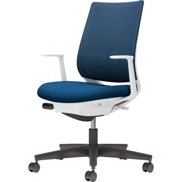 【組立設置込】コクヨ ミトラ2 メッシュ スタンダードバック ランバー付 L字肘 黒脚 ウレタンキャスター 白灰×プルシアンブルー 1脚(直送品)