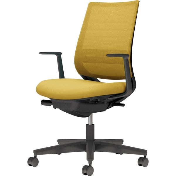 【組立設置込】コクヨ ミトラ2 メッシュ スタンダードバック ランバー付 L字肘 黒脚 ナイロンキャスター ブラック×オリーブイエロー 1脚(直送品)