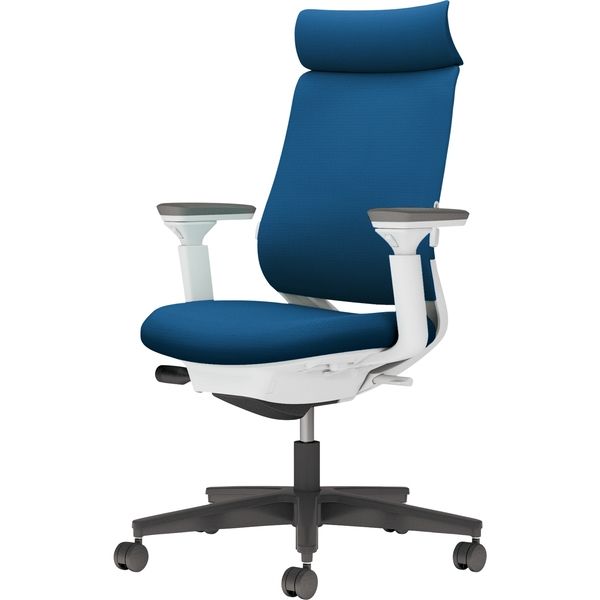 【組立設置込】コクヨ ミトラ2 布 アディショナルバック ランバー付 可動肘 黒脚 ウレタンキャスター 白灰×プルシアンブルー 1脚(直送品)