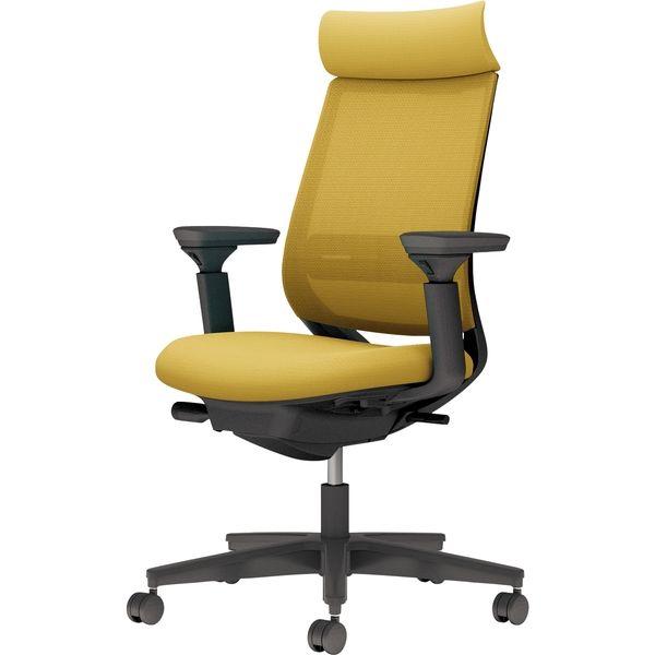【組立設置込】コクヨ ミトラ2 メッシュ アディショナルバック ランバー付 可動肘 黒脚 ナイロンキャスター 黒×オリーブイエロー 1脚(直送品)