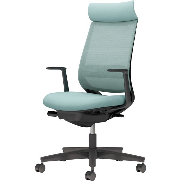 【組立設置込】コクヨ ミトラ2 メッシュ アディショナルバック ランバー付 L字肘 黒脚 ウレタンキャスター 黒×アッシュターコイズ 1脚(直送品)