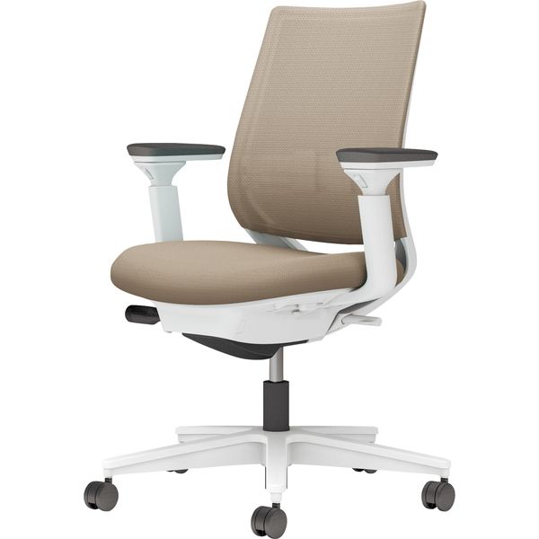 【組立設置込】コクヨ ミトラ2 メッシュ スタンダードバック ランバー付 可動肘 白脚 ナイロンキャスター 白灰×ソフトベージュ 1脚(直送品)