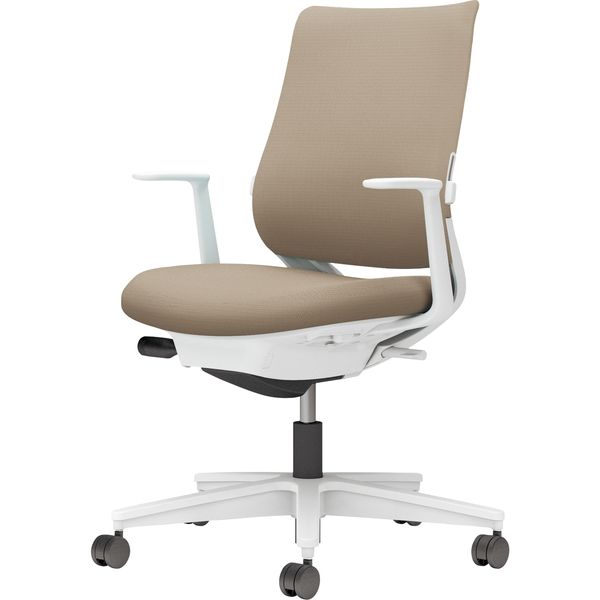 【組立設置込】コクヨ ミトラ2 布 スタンダードバック ランバー付 L字肘 白脚 ナイロンキャスター ホワイトグレー×ソフトベージュ 1脚(直送品)