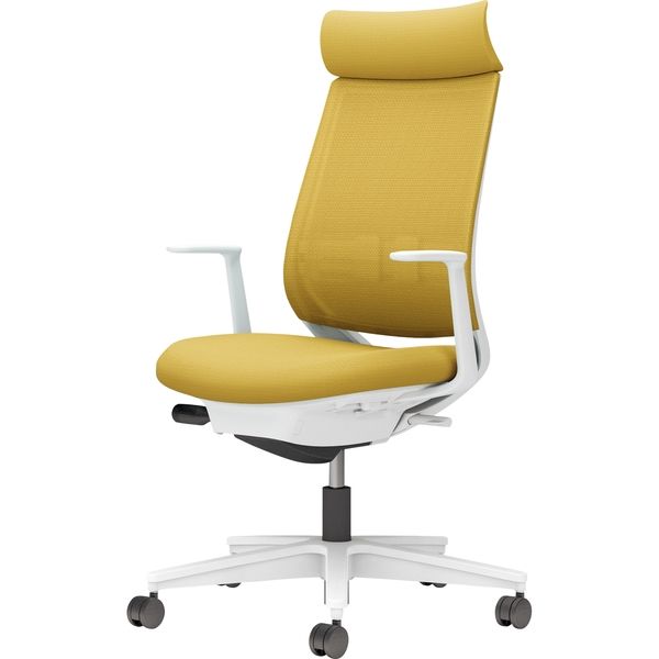 | ランバーサポート | 有り | その他商品仕様 | ●機能:ガス圧昇降式、ポスチャーサポートシート、オートフィットシンクロロッキング、ロッキング反力 簡易調節機能(5段階)、ロッキング角度範囲 調節機能(0°、6°、13°、20°の4段階)、座高さ調節(ストローク90mm)、座奥行き調節(ストローク50mm)、ランバーサポート(メッシュタイプ/上下ストローク50mm+内外2段階)、ショルダサポート、クリーンテクトコーティング●キャスター仕様:カーペットのような柔らかい床用●カラー: 本体:ホワイトグレー 背:オリーブイエロー 座:オリーブイエロー |
