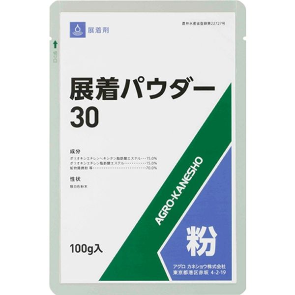| 商品の特徴 | コナ状の展着剤。我国で最初に開発されたコナ状の展着剤です。アワが少なく、消泡性能があり作業効率があがります。 | ||