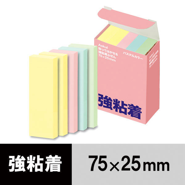 アスクル 強粘着ふせん 75×25mm パステルカラー 1箱(5冊入) オリジナル(わけあり品)