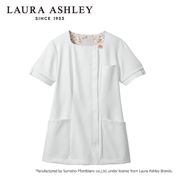 | 商品の特徴 | 住商モンブランのナースジャケット。イギリスのライフスタイルブランド「ローラ アシュレイ」シリーズのアイテムです。デコルテラインがきれいに見えるスクエアネックで、すっきり華奢な印象。ウエストをさりげなく絞ったフェミニンなシルエットもポイント。透けにくい素材だから、安心して着られます。背裏や袖口部分に花柄生地をアクセントとして使用。時計などがかけられる便利なウエストループ付き。生地機能は制菌・吸汗・制電・防汚機能付きです。 | ||