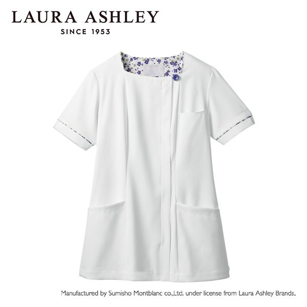 | 商品の特徴 | 住商モンブランのナースジャケット。イギリスのライフスタイルブランド「ローラ アシュレイ」シリーズのアイテムです。デコルテラインがきれいに見えるスクエアネックで、すっきり華奢な印象。ウエストをさりげなく絞ったフェミニンなシルエットもポイント。透けにくい素材だから、安心して着られます。背裏や袖口部分に花柄生地をアクセントとして使用。時計などがかけられる便利なウエストループ付き。生地機能は制菌・吸汗・制電・防汚機能付きです。 | ||