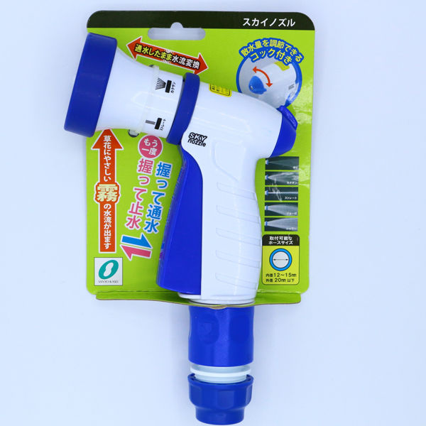 商品の特徴 通水したまま水流変換。散水量を調整できるコック付き。草花にやさしい霧の水流が出ます。5つの水流が選べます(霧、拡散、ストレート、ジョーロ、シャワー)。