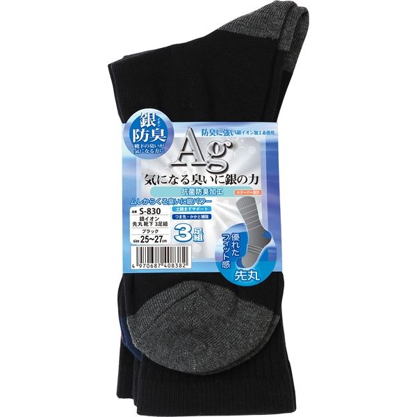 おたふく手袋 S-830 銀イオン 先丸靴下 3P ブラック S-830-2115409 1組