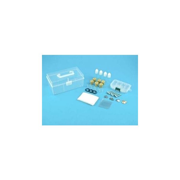 | 商品の特徴 | ●少量の溶液でダニエル電池の実験ができるセットです。●必要な溶液は2滴。●組立てが簡単で内部構造を理解しやすい。●電極板間を狭めることで比較的高い電圧が発生。●セット内容:●電極用部品(アクリル円筒、ねじ、穴あきコルク栓、Oリング)2セット分、金属片4種(銅・亜鉛・アルミニウム・鉄、10×10×1mm) 各5枚、ろ紙(60×90mm) 25枚、セロハン(50×50mm) 40枚、点眼びん 4本、収納ケース | ||