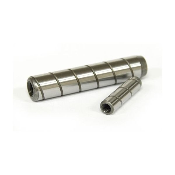 | 商品の特徴 | ●径公差 +0.005~+0.010●標準タイプです。●エア抜き溝はスパイラル形状とすることで、方向性を気にせず使用できます。●材質=SCM445相当 硬度=HRC58~62●抜き取り用の内ねじがついた、位置決めなどに使用するダウエルピンです。●袋穴でも使いやすいよう、エア抜き溝を施しています。●打ち込み時にカジリにくくするため表面硬度を高くし、さらに表面粗さもなめらかに仕上げています。●→抜き取りにはノックアウターをご利用下さい。●→JIS規格との比較は技術情報をご覧下さい。 | ||