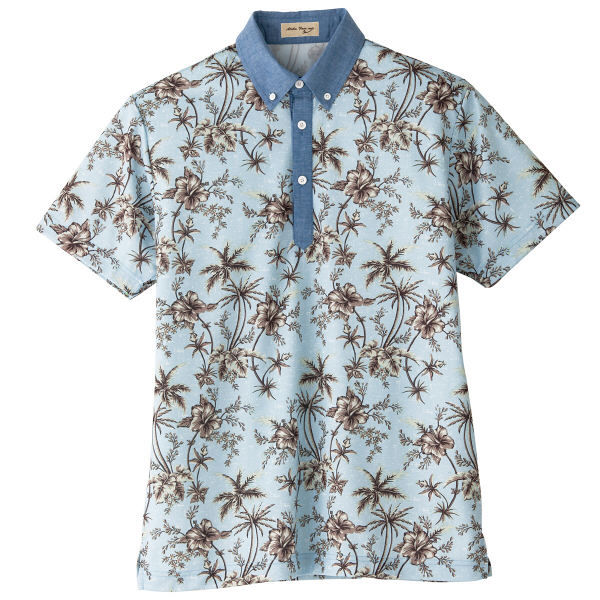 ボンマックス アロハプリントポロシャツ ブルー 3L FB4524U-7(直送品)