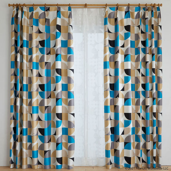 スミノエ PEANUTS セミオーダー カーテン スリーピースヌーピー 1600×2350mm ブルー 1セット(2枚入)(直送品)
