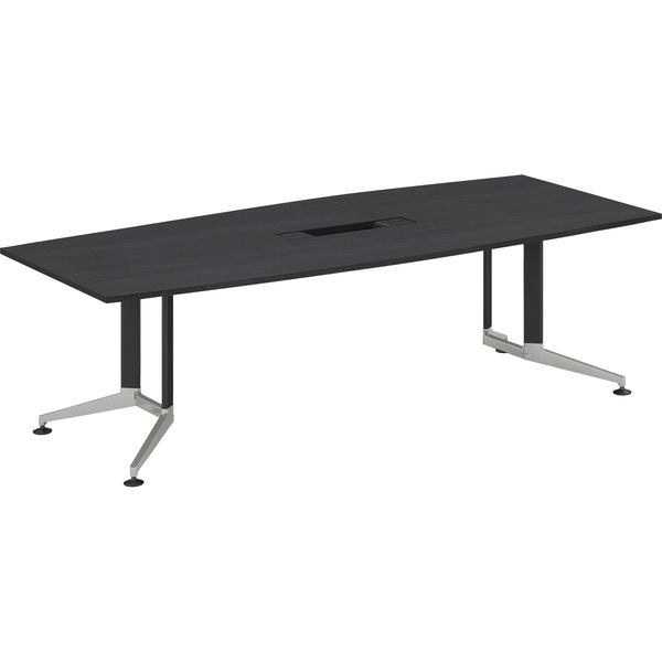 【設置込】プラス ロンナ 会議テーブル T字脚アジャスター ボート形 配線口付 幅1800×奥行900mm ミディアムウッド/ブラック 1台(直送品)