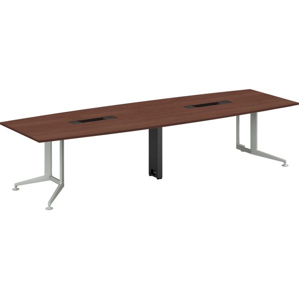 【設置込】プラス ロンナ 会議テーブル T字脚アジャスター ボート形 配線口付 幅1800×奥行900mm ミディアムウッド/ブラック 1台(直送品)