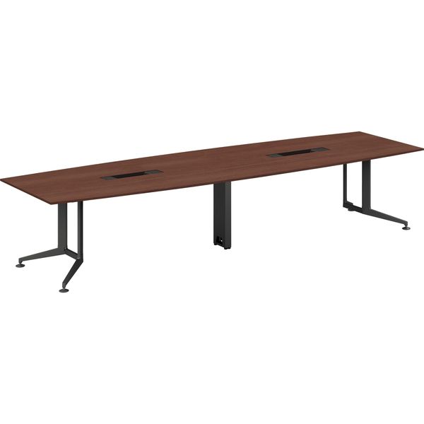 【設置込】プラス ロンナ 会議テーブル T字脚アジャスター ボート形 配線口付 幅1800×奥行900mm ミディアムウッド/ブラック 1台(直送品) |