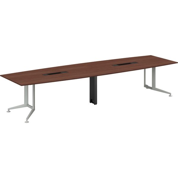 【設置込】プラス ロンナ 会議テーブル T字脚アジャスター ボート形 配線口付 幅1800×奥行900mm ミディアムウッド/ブラック 1台(直送品) |