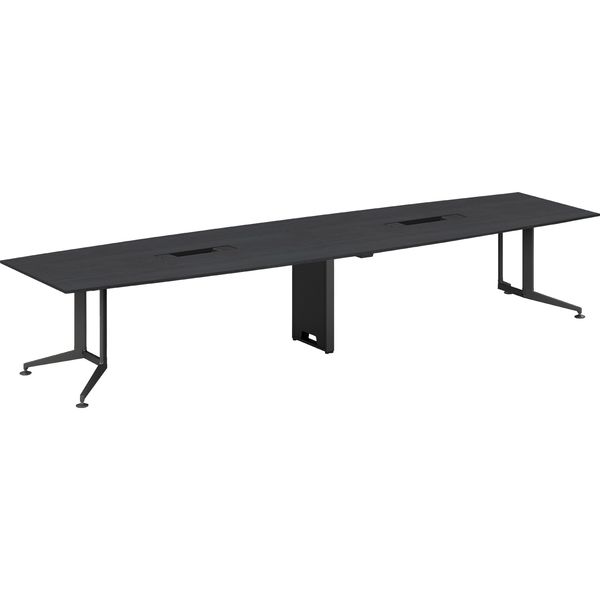 【設置込】プラス ロンナ 会議テーブル T字脚アジャスター ボート形 配線口付 幅1800×奥行900mm ミディアムウッド/ブラック 1台(直送品) |